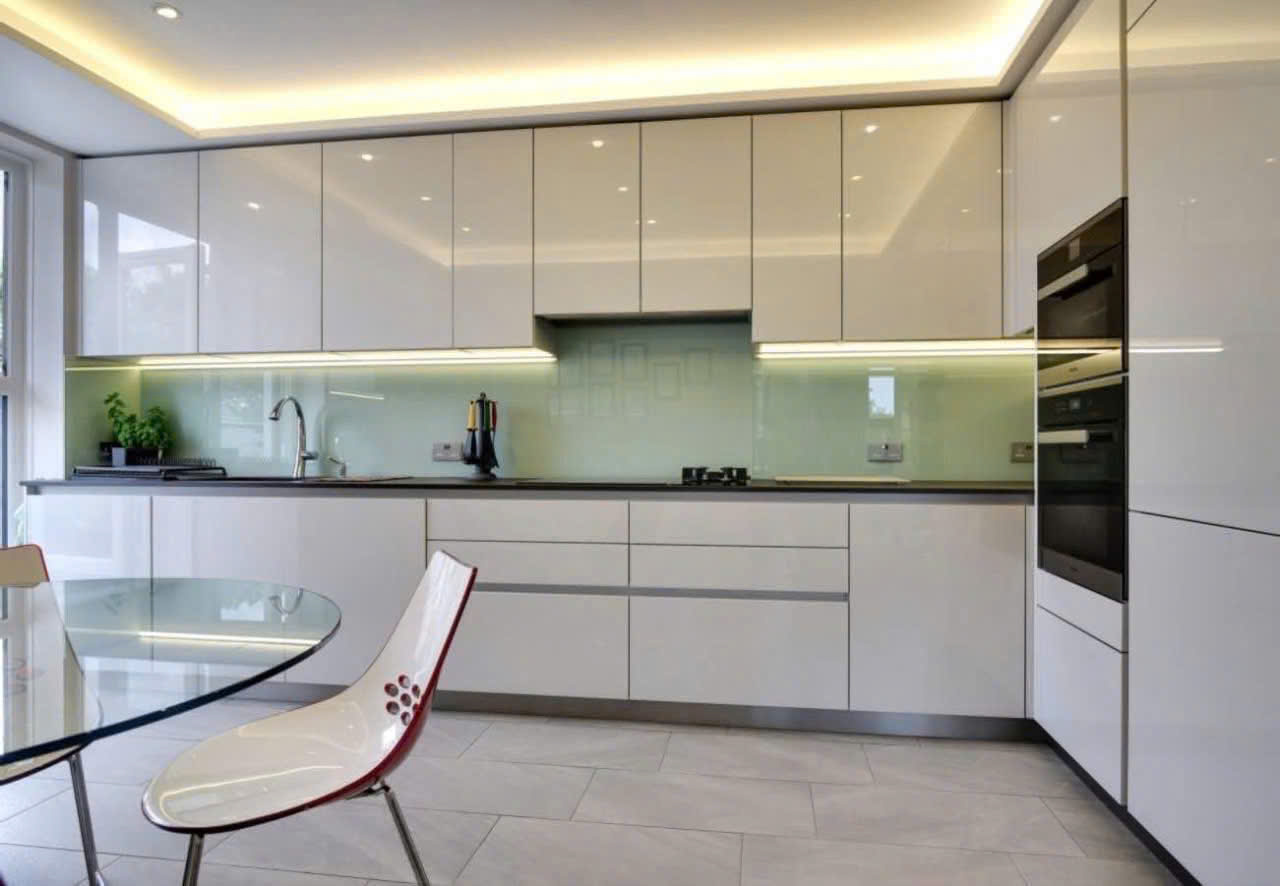 Bề mặt Acrylic bóng gương: Cánh tủ trắng bóng gương tạo hiệu ứng phản chiếu ánh sáng, giúp không gian bếp trông rộng rãi, thoáng đãng và vô cùng hiện đại.