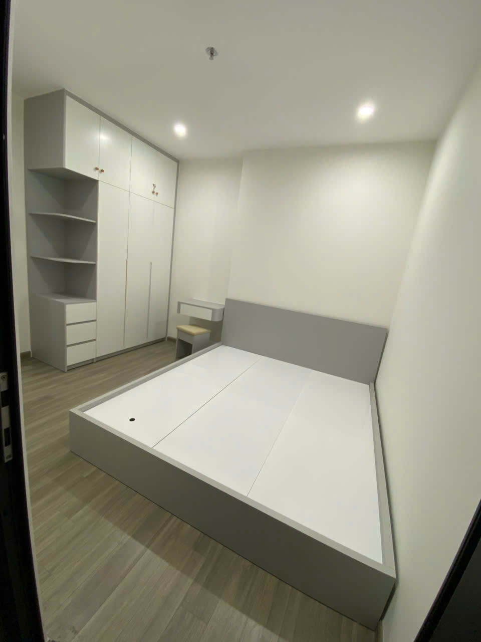 Giường ngủ dạng bục (Tatami): Giường được thiết kế khối chắc chắn, tích hợp các hộc chứa đồ lớn dưới giáp giường và ngăn kéo hông, giúp căn phòng luôn gọn gàng.
